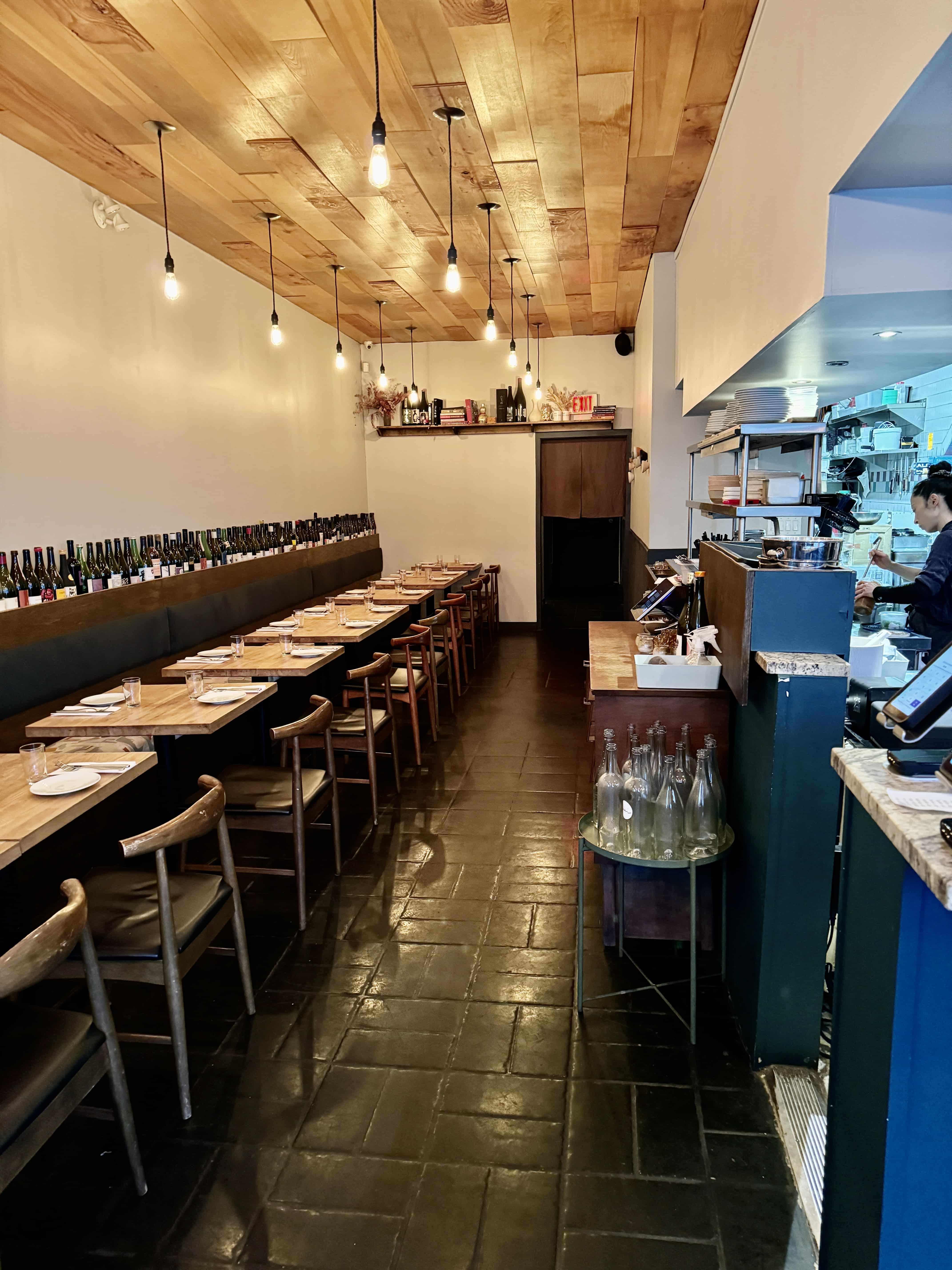 While the menu isn’t extensive and constantly changes due to what’s available, explore it with friends. Also offered is a tasting menu which is a good way to explore the choices. Looking for a meat and cheese tasting? They also offer a “build your own board” as well. There claim to fame are the large selections of Pet Nat wines, including Orange wines, and craft Sake’.