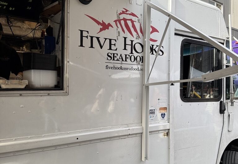 Food truck offering seafood to go. The fish (cod) was deep fried but 2 things made the flavors wonderful: first the planko and second was the tartar sauce. Not sure I’ve ever had better. Tart but with a slight sweetness. Perfect with the fish. Make sure you get an extra one since you’ll need 2 because it’s so tasty.