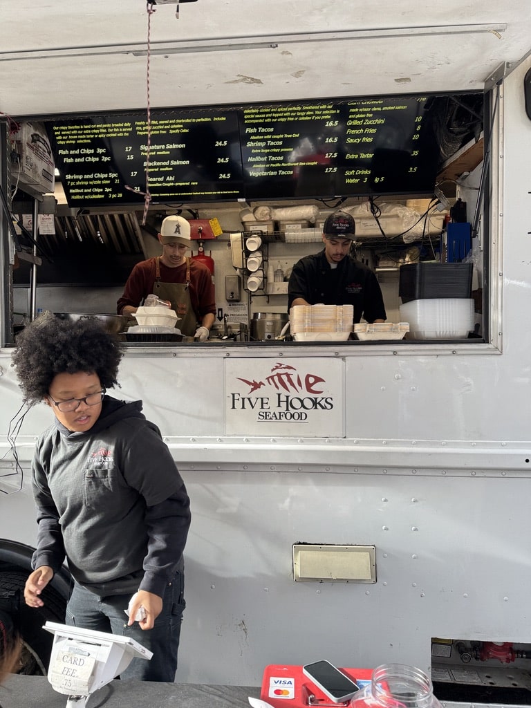 They also offer clam chowder, fried halibut, shrimp and clams as well as fish, shrimp and veg tacos.