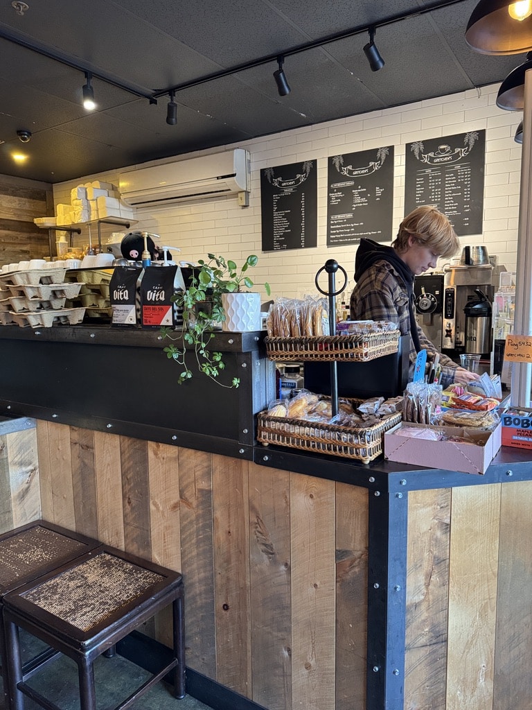 It’s a quiet place for a coffee and conversation in the Sand Point area of town. They serve Café Vita Coffee. Baked goods, smoothies and sandwiches are also available.