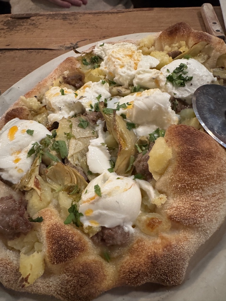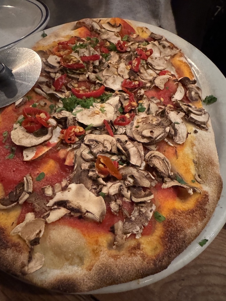Very good pizza and the space is rustic which gives it an interesting vibe.
