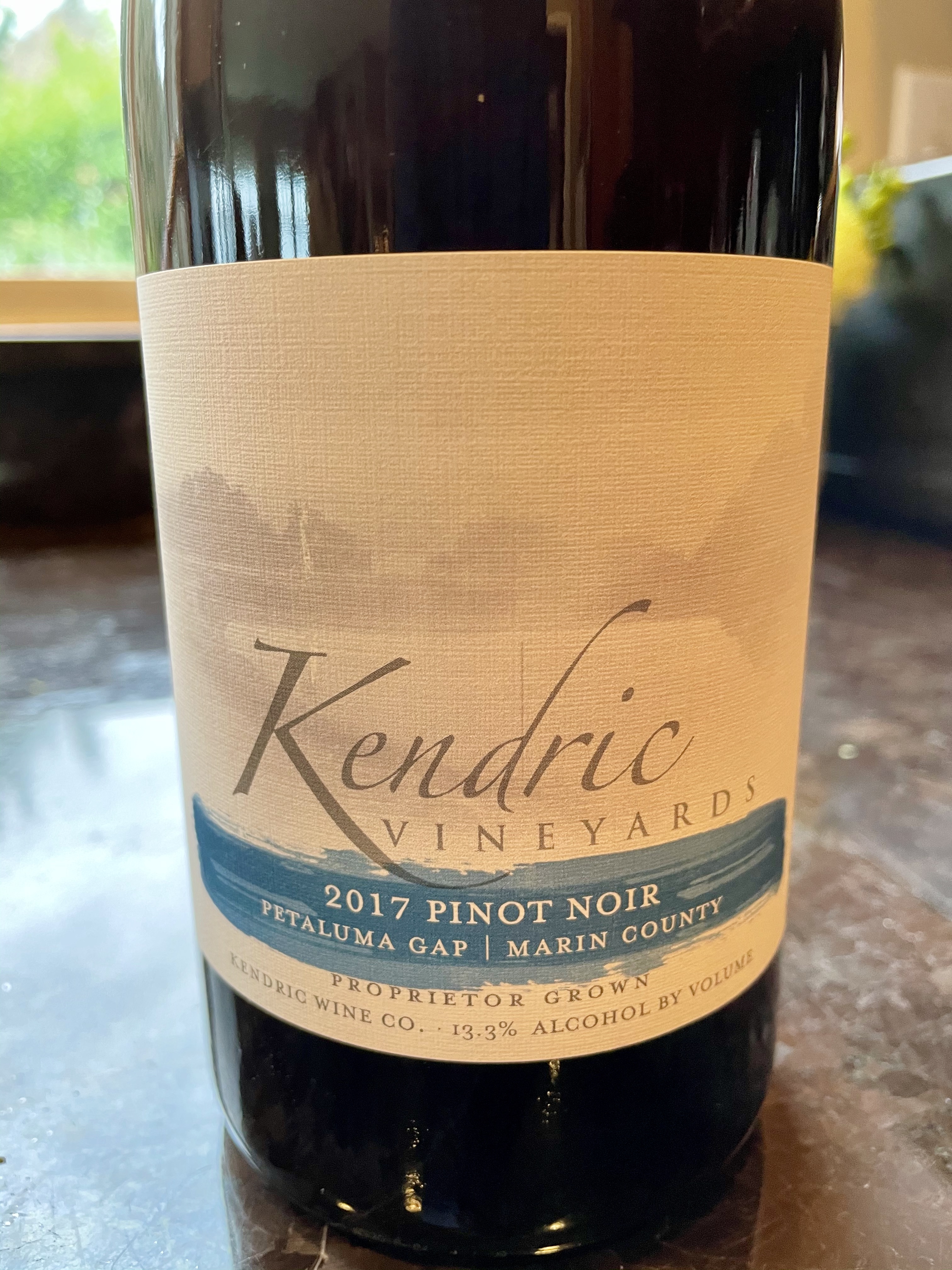 Our wine: a California Pinot Noir from Kendric Vineyards. More like an Oregon Pinot with more fruit and less tannins than typical for the source.