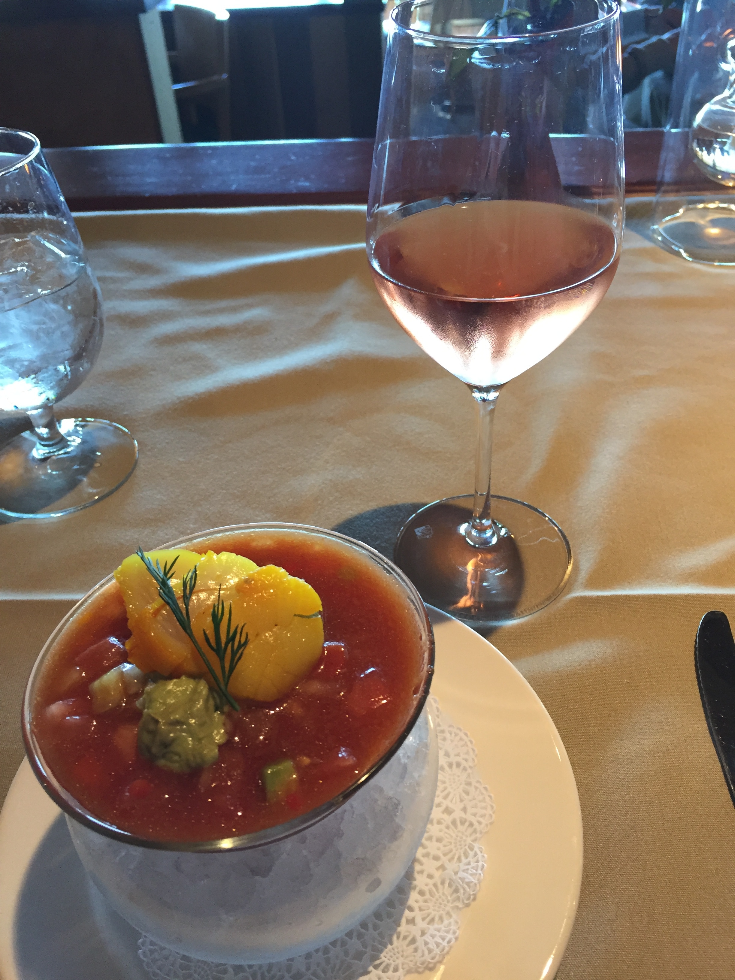 Spectacular view from the upper restaurant. Of course the raw Kumamoto oysters were outstanding as were the fried variety. There is outdoor seating below…just ask. The food was very good with the saffron infused scallop heirloom tomato gazpacho being outstanding.