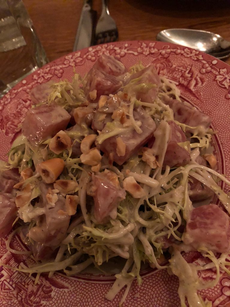 We started with the antipasti…looked like the most popular starter with a quick visual on entering. Highlights were the pickled vegetables and soppressata. Next up was the beet salad presented with a black trumpet vinaigrette….very nice balance with the sweeter beets and the tangy vinaigrette.