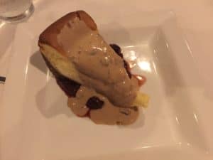 Classic shrimp and grits (Anson Mills) with eggnog cheesecake to finish.