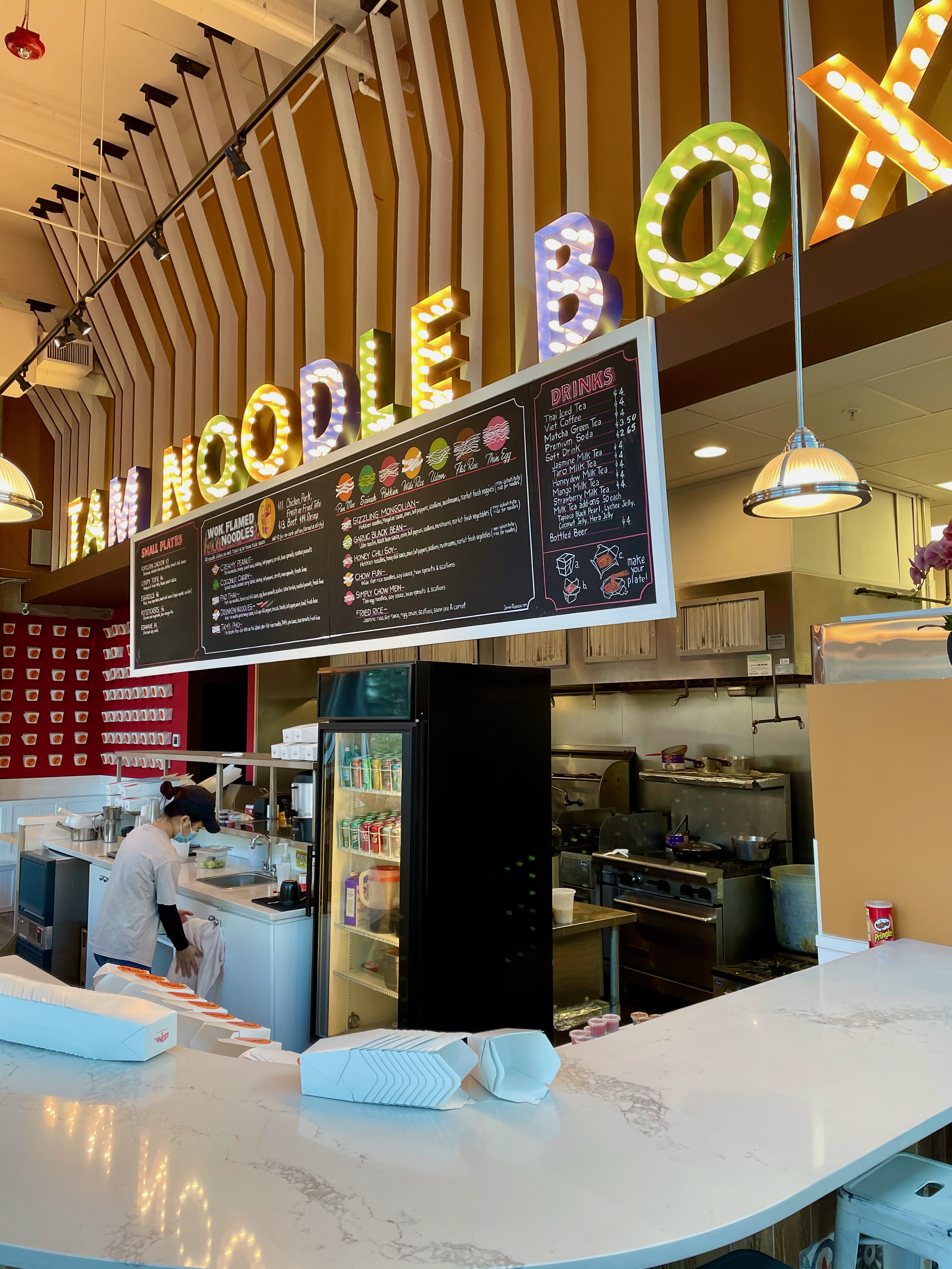 Recommended by a colleague and it was spot on. This place is all about wok prepared noodles…multiple choices to which you add a protein…chicken, pork, shrimp or tofu. My choice this visit was the shrimp sizzling Mongolian which was prepared with hokkien noodles. When asked hot spicy I wanted it I picked the middle of the road at 3/5…quiet spicy and I’m glad I didn’t go all the way. The dish was delicious…sweet and spicy all in one. They also have multiple examples of milk tea…my choice… mango…balanced the spiciness of the dish perfectly.